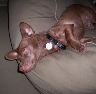 Among the things that stick out the most about Choco was his penchant for being close to you. In those years Choco would often sleep with you, and even when he went to sleep in his own bed, by the morning you'd wake up with him next to you. I remember him sleeping on top of me. It felt comforting and reassuring, almost like he was protecting me during the night. Later on, when he no longer could be allowed on beds, this became one of the things I missed most.