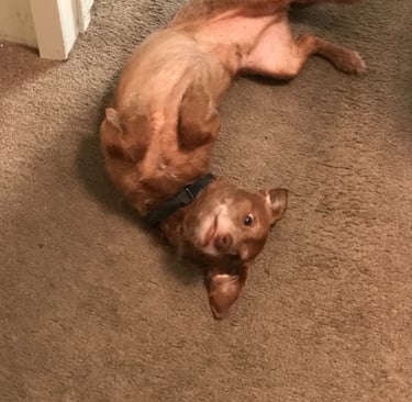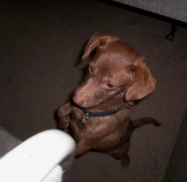 Choco could be a sweetheart, but he could also be a troublemaker. His most persistent offense consisted of him pillaging the bathroom and taking out all the stuff in the trash can. This was messy, and upset my parents. They would scold Choco, but he always had an ace in his back pocket to get the heat off his back. He would flip on his back, put his paws up, and look at us. It was clever, in a way admitting his remorse yet at the same time employing his cuteness to soften us up. It was impossible to stay mad at him whenever he'd look at us from this position.