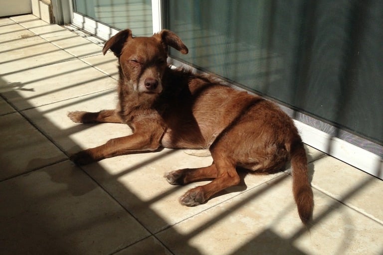 The move took a noticeable toll on Choco. He had become used to his old life, and it would take time for him to adapt to his new home. The first noticeable challenge was the floor, which was very different from our old home. This new floor was hardwood, rather than carpet, and it was slippery. It made walking difficult for him as he was slipping all the time.