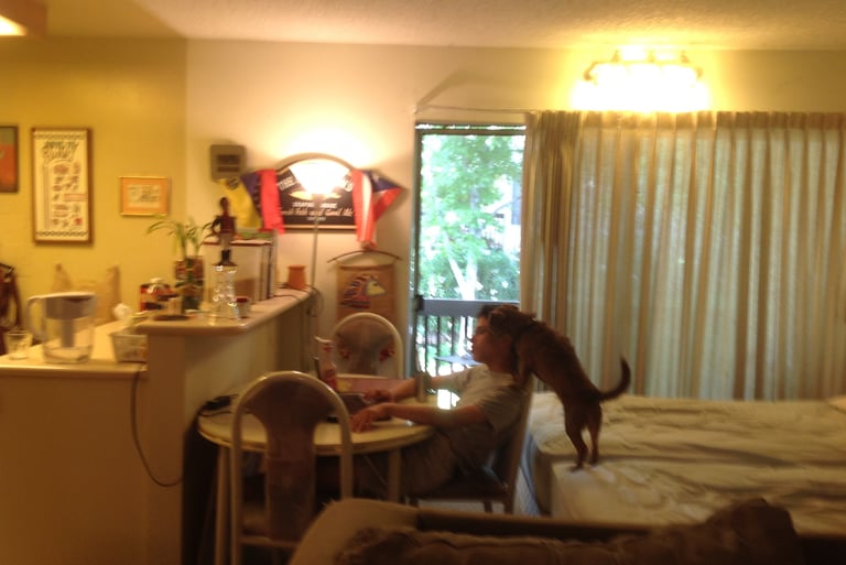 Choco's life in the valley during these years was in many ways predictable. We got used to seeing him jump around, on the bed and on the couch. He would jump onto our lap whenever we were seated. At night we'd take him out to walk and do his business. It seemed like this lifestyle would go on indefinitely for him.