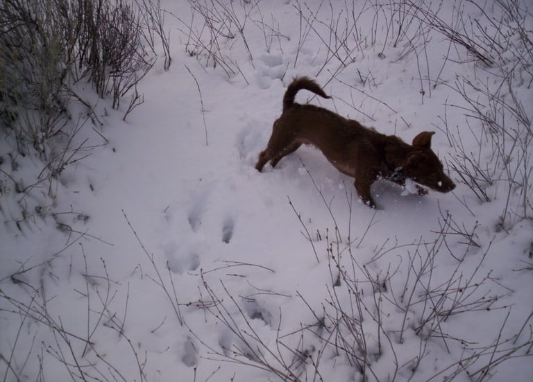 Speaking of playing, who could forget that winter day when we took Choco to the mountains up north? That whole area had been covered in snow, which is a rare sight in SoCal. It was the dog's first ever time seeing snow, and he ate it up wholeheartedly. Up and down he leaped, diving into the snow with blistering enthusiasm and frenetic zeal. He looked like a snow fox out there. The snow was no match for him.